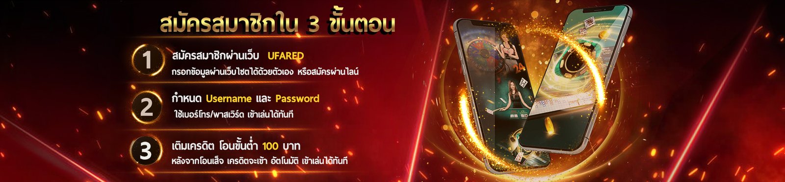 นอกจากนี้ UFARED ไม่มีขั้นต่ำในการฝากถอน ผู้เล่นสามารถเริ่มต้นฝากเพียง 1 บาท ก็สามารถเข้าเล่นได้ทุกเกม ถือว่าเหมาะกับผู้เล่นทุนน้อยที่ต้องการปั้นกำไรจากทุนเล็ก ๆ